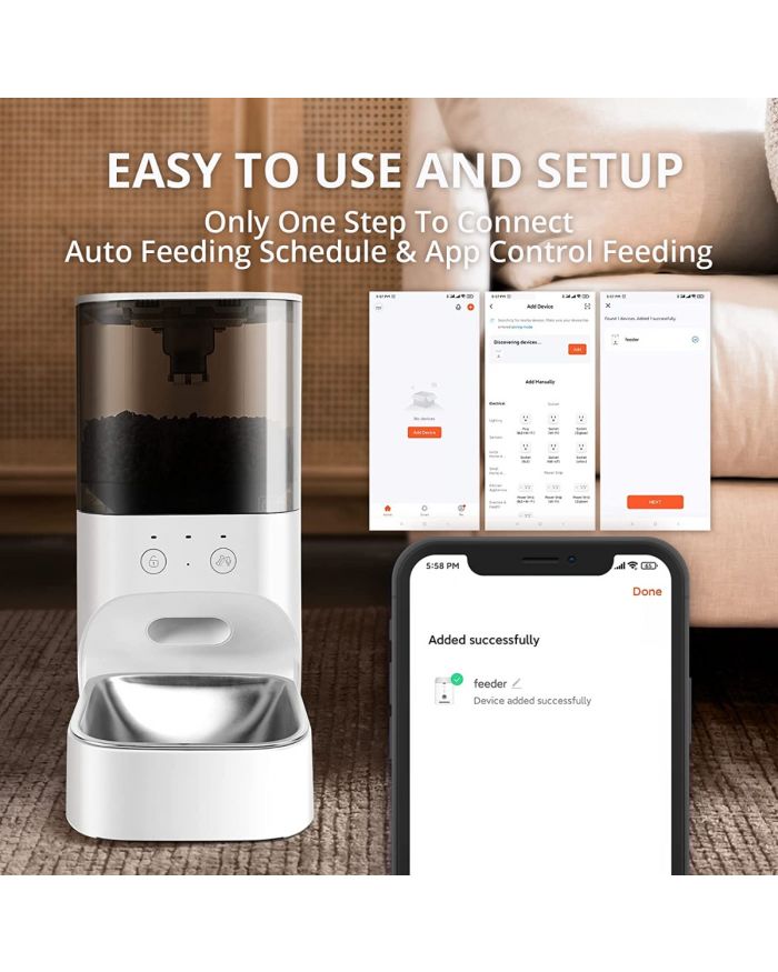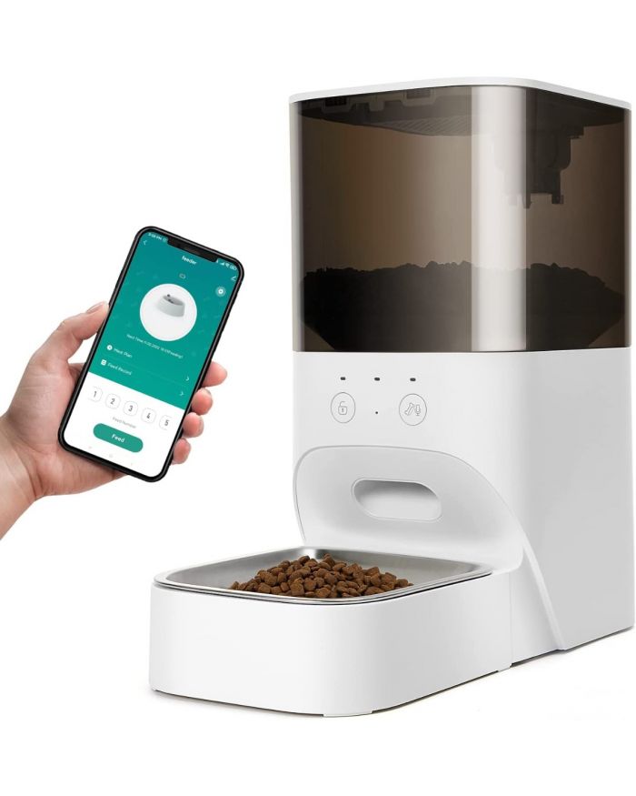 Cat feeder automatic entirely made of 304 stainless steel, it is BPA-free, rust and corrosion resistant. Only the stainless steel part can be washed in the dishwasher.
