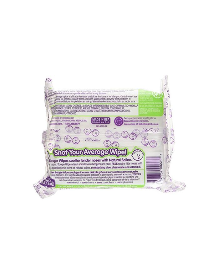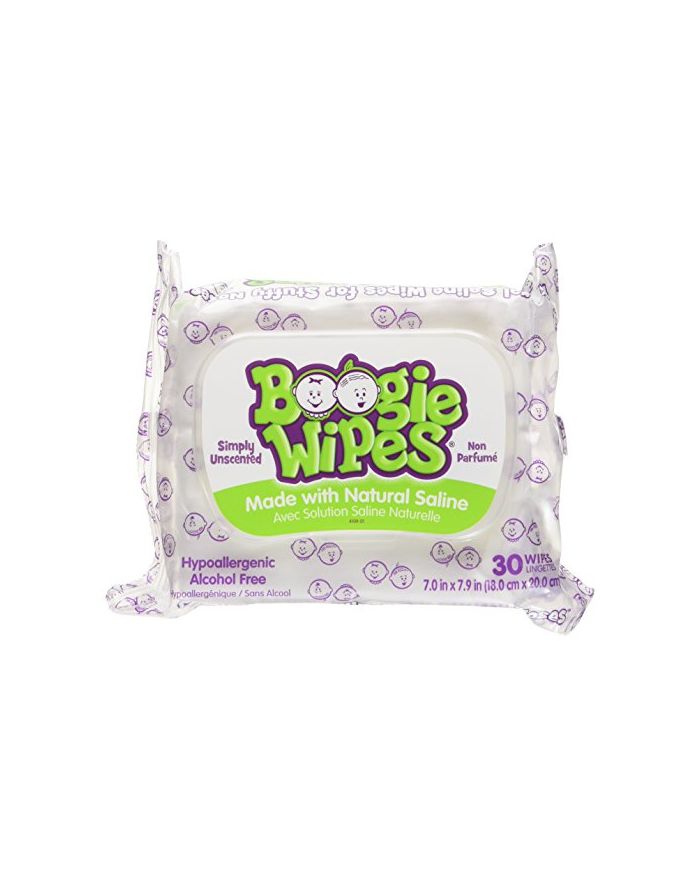 Boogie Wipes, Unscented Wet Nose Wipes for Kids and Baby, Allergy Relief, Soft Natural Saline Hand and Face Tissue with Aloe, Chamomile and Vitamin E, 30 Count, Pack of 3